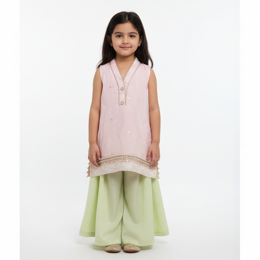 Fabric: Raw Silk Embroidered Shirt with Cotton Silk Flared Pant